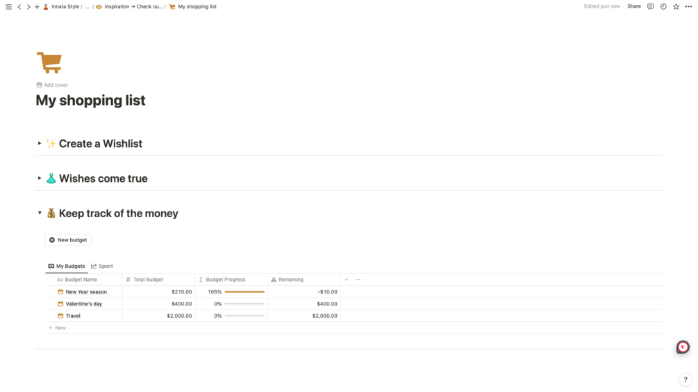 4. My Budget - This is where you record your monthly or seasonal budget and keep track of your expenses as you purchase new items. No more wild spending on stuff you don’t need (or sometimes, even want). Shop within your budget and feel great about your purchases.
